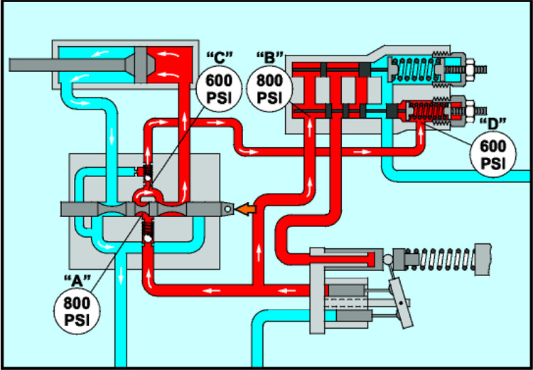 實(shí)現(xiàn)該系統(tǒng)主要部件為具備LS口負(fù)載敏感泵(常見(jiàn)的如