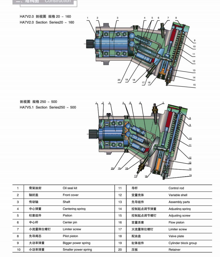 下面為A7V系列斜軸式柱塞泵內(nèi)件結(jié)構(gòu)圖: